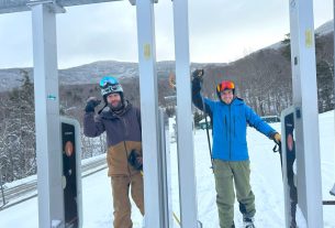 Rockin’ Ron for Hugh. Both Madonna I and Sterling lifts are running today and 43 trails are open including Doc Dempsey’s, Freefall, and Smugglers’ Alley. It’s even spitting snow at the higher elevations. Tomorrow could be a repeat of that scenario. It was noteworthy to see a certain trio of skiers: guitarist/bassist/mandolinist Rudy Dauth (Smuggs House Band, Chad Hollister band, etc), keyboardist Steve “Punque” Vance (Smuggs House Band alum, Showtime co-creator, Hoopla, etc) and woodwinds player Chris Peterman (Eight02, Chad Hollister band, etc). Alas, today was my last day on the slopes this season. But, YOU have one more day… SUNDAY, APRIL 13th is the last day of the 2024-2025 Winter Season. Ski you in December.