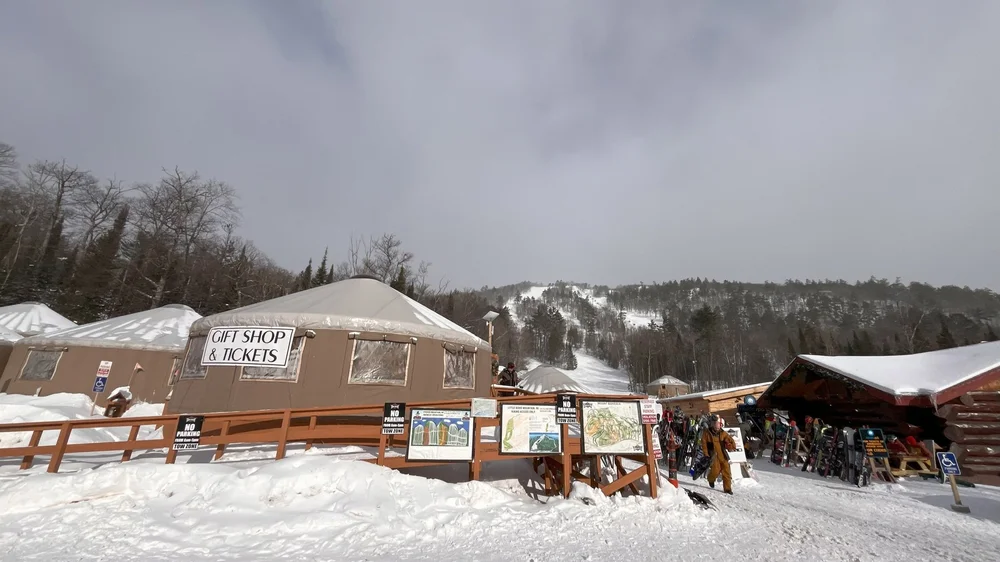 Mount Bohemia’s yurt-heaving base area is home to a few bars, lodging, and food options.