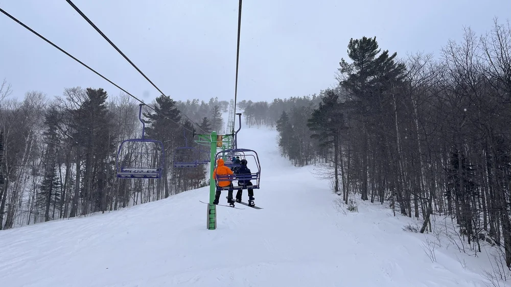 As for getting up the hill, there are two lifts, the frontside triple chairlift (officially known as the Mountain Dew Hoist), and the backside double lift (officially known as the Honey Pot Hoist). The triple lift is in the process of a phased rebuild, and the project will bring new towers and triple chairs for the 2025-26 ski season. Despite there only being two lower capacity lifts, lines at Mount Bohemia move relatively fast, with occasional 15 minute lines building up on the busiest Saturdays, but ski-on lifts on weekdays.